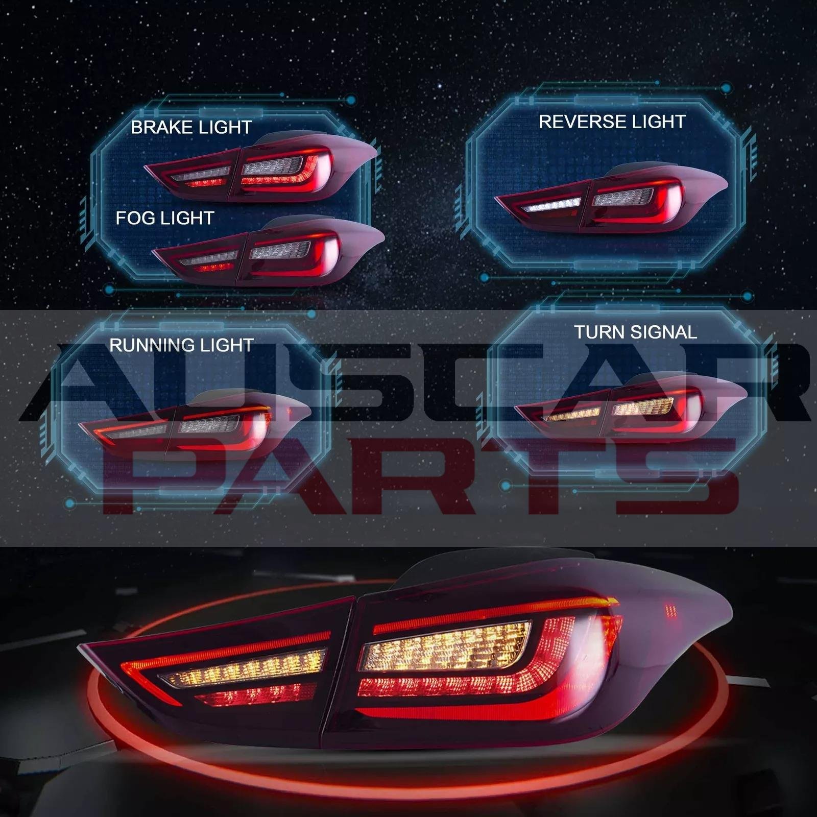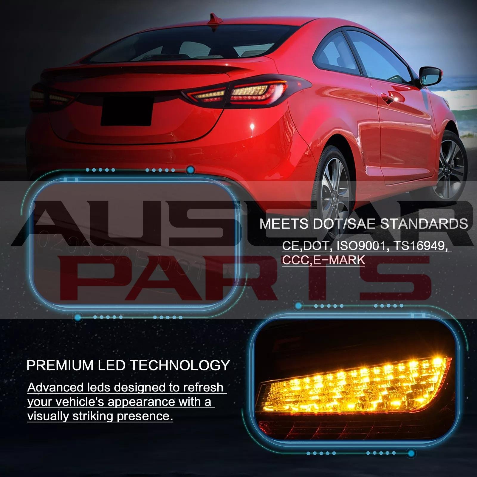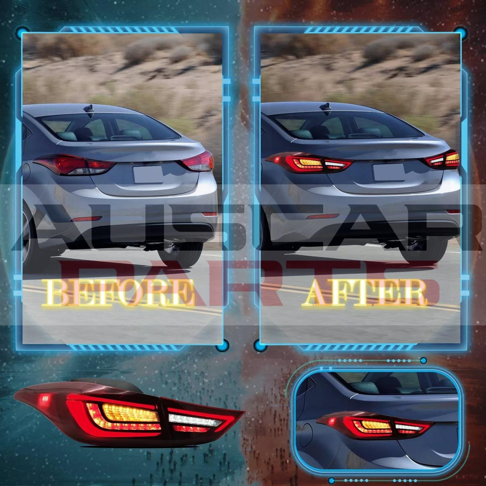 • Fitment: Full LED bar tail lights assembly Compatible for 11-16 Hyundai Elantra 5th Gen (MD/UD)Sedan & 13-14 Elantra Coupe. Designed as a perfect replacement for your OE lights, they install the same way as factory units.