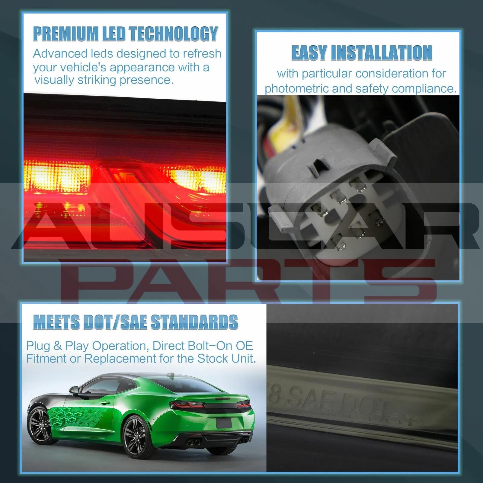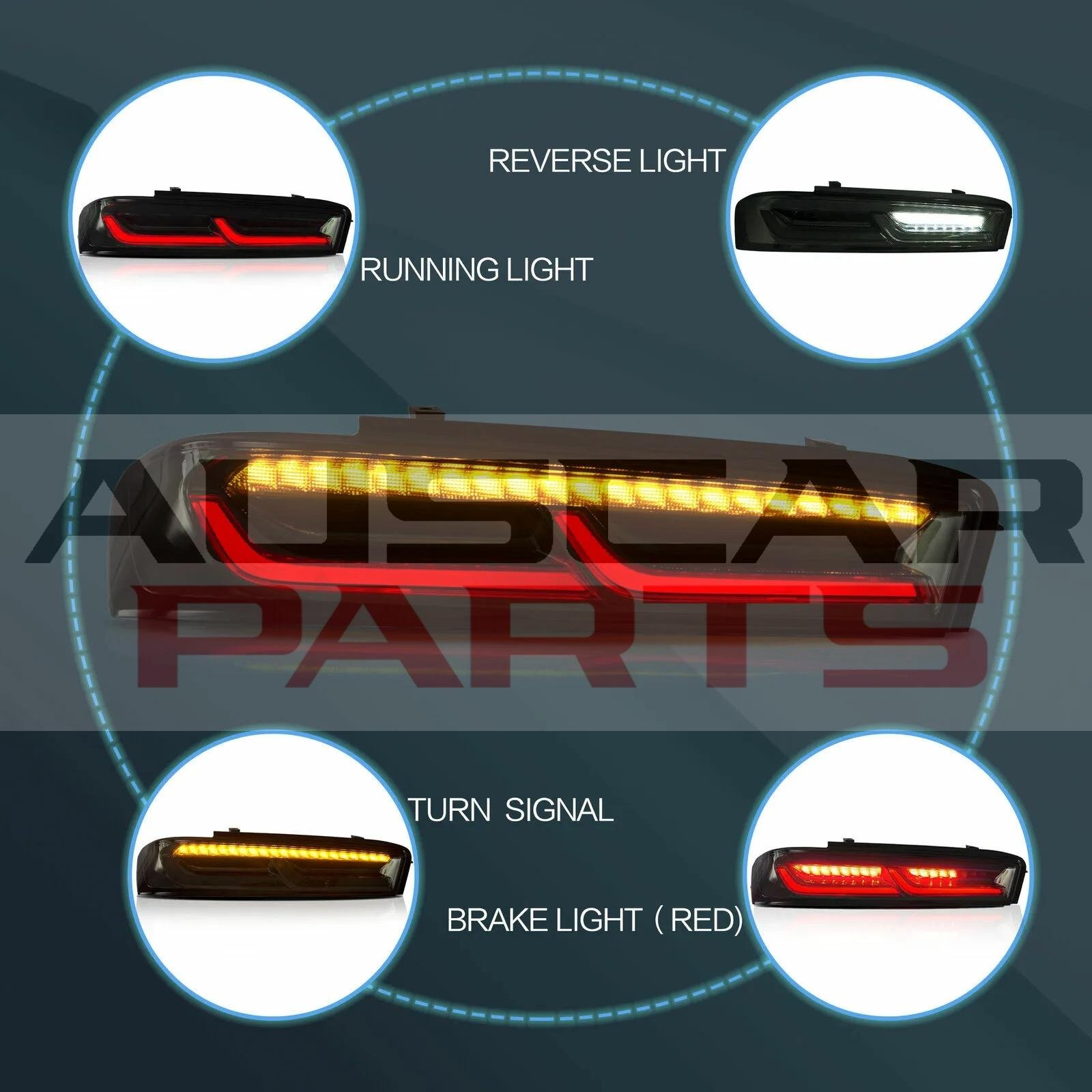 • Fitment: Full LED bar tail lights assembly for 16-18 Chevrolet Camaro 6th Gen American Models With US Plug. If your vehicle is equipped with anything but OEM turn signals (full assemblies, LED bulbs, or otherwise) in the headlights or elsewhere: You may experience a hyper flash and / or problem with sequential signal setting on the these taillights. This is not a defect in the taillight, and caused by un-matched with your original vehicle setting. If this happens, please contact us. We can solve it.